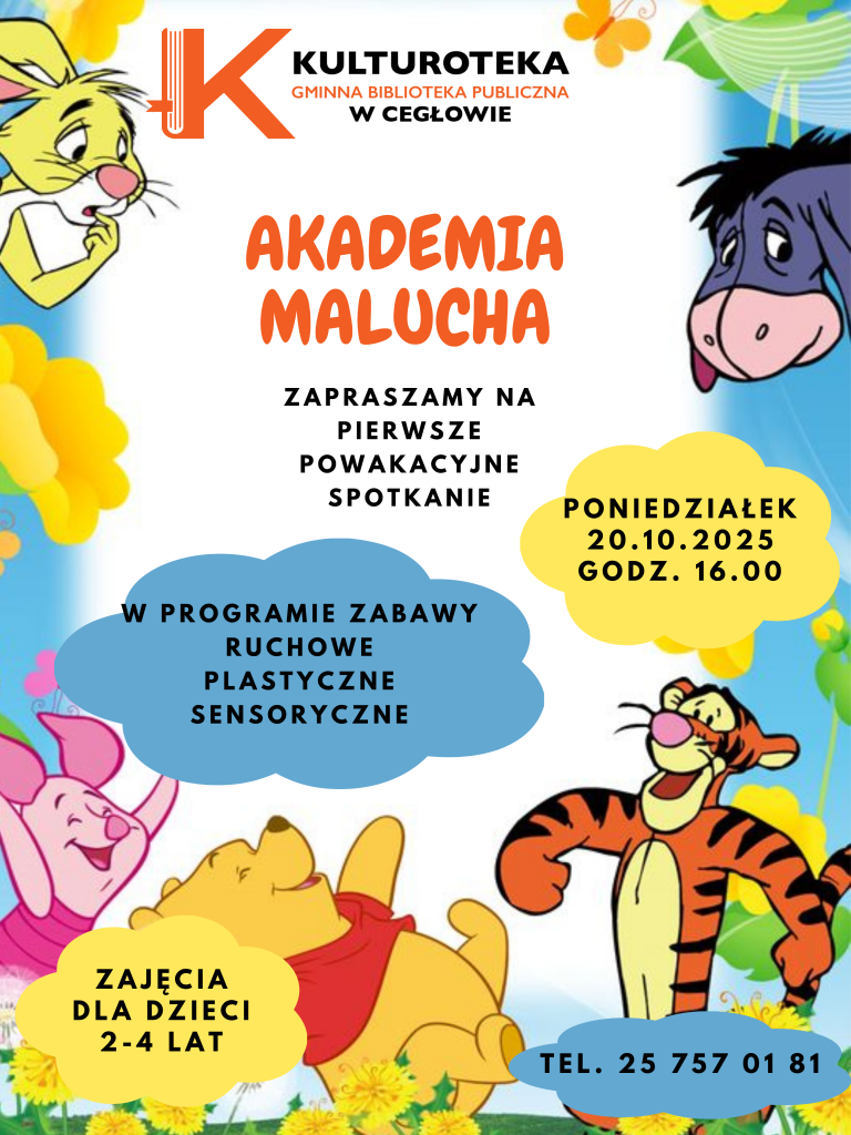 17 października 2025Już w najbliższy poniedziałek 20 października o godz. 16.00 zapraszamy dzieci w wieku 2-4 lata na spotkanie w bibliotecznej Akademii Malucha.