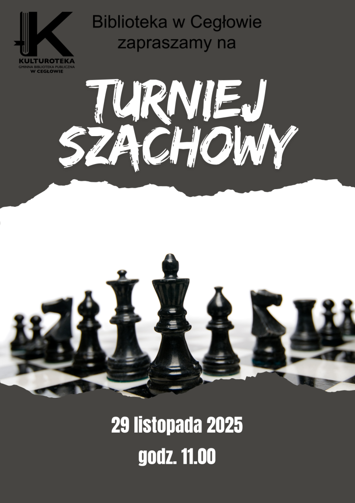 Chcesz sprawdzić swoje umiejętności w grze w szachy? Wszystkich zainteresowanych zapraszamy do biblioteki na otwarty turniej szachowy w sobotę 29 listopada o godzinie 11.00.