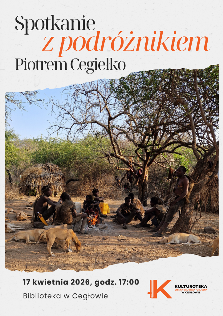 14 kwietnia 2026Już w najbliższy piątek o godz. 17.00 zapraszamy serdecznie na podróż w czasie 12 000 lat wstecz. O ludziach z plemienia Hadzabe, którzy nie liczą upływu czasu, nie potrzebują cywilizacji, żyją zgodnie z rytmem przyrody, o tym i jeszcze innych ciekawostkach opowie nam podróżnik Piotr Cegiełko. Zapraszamy!